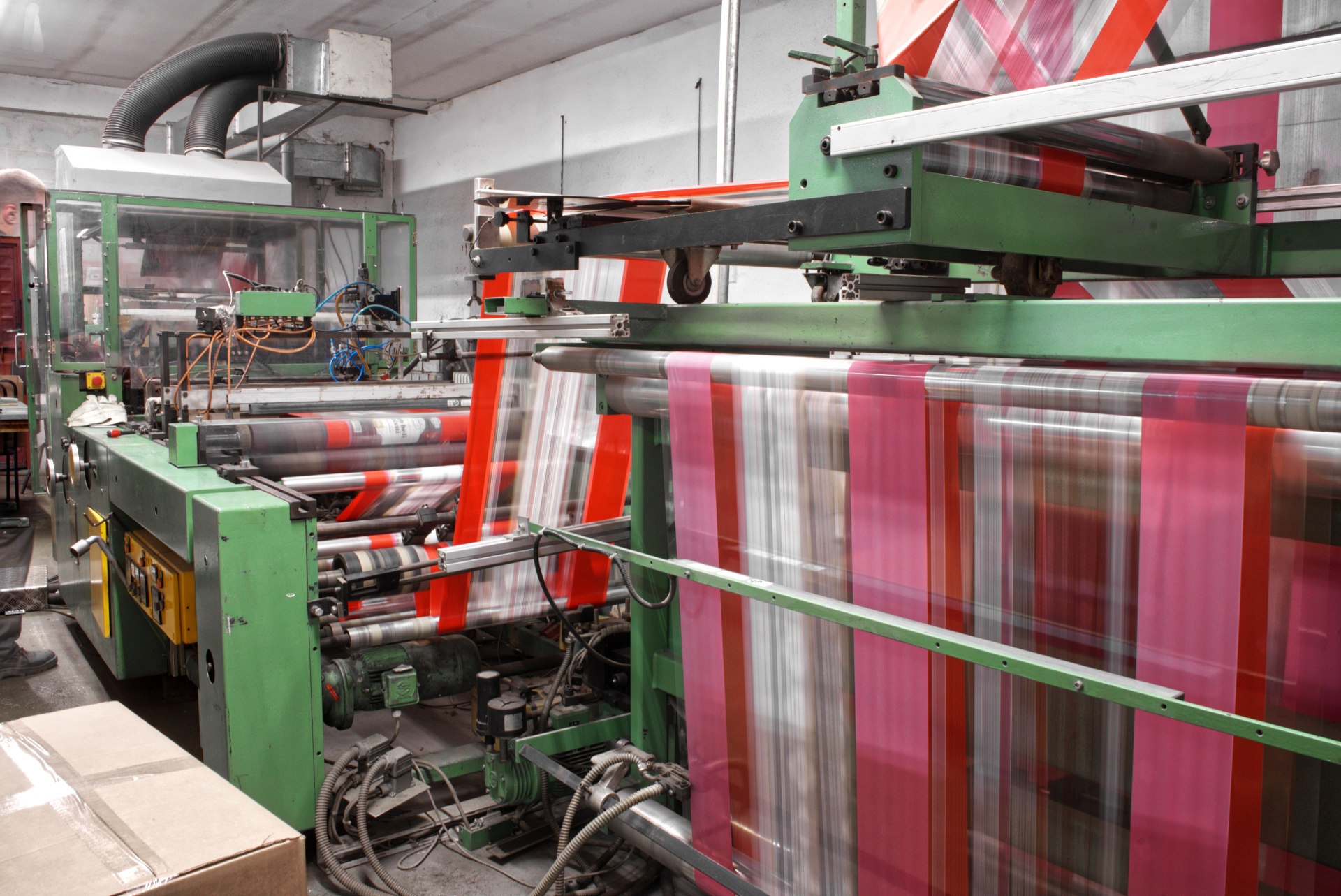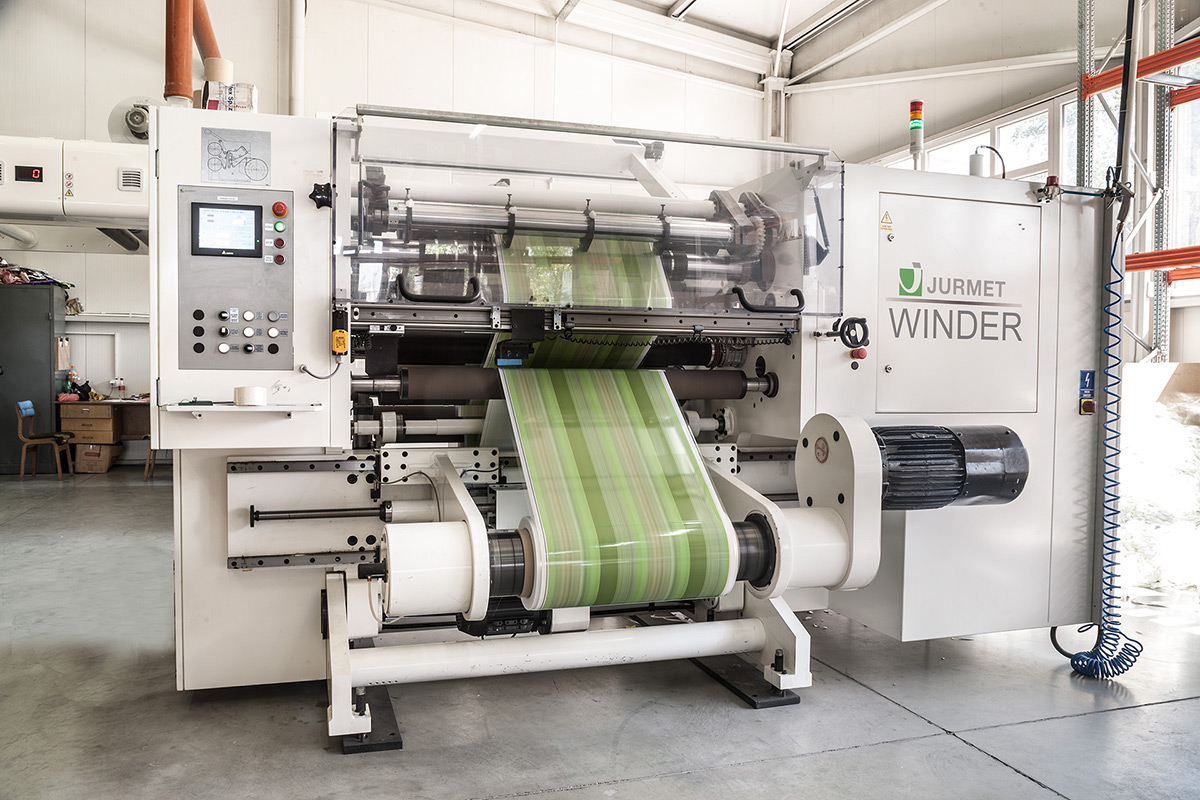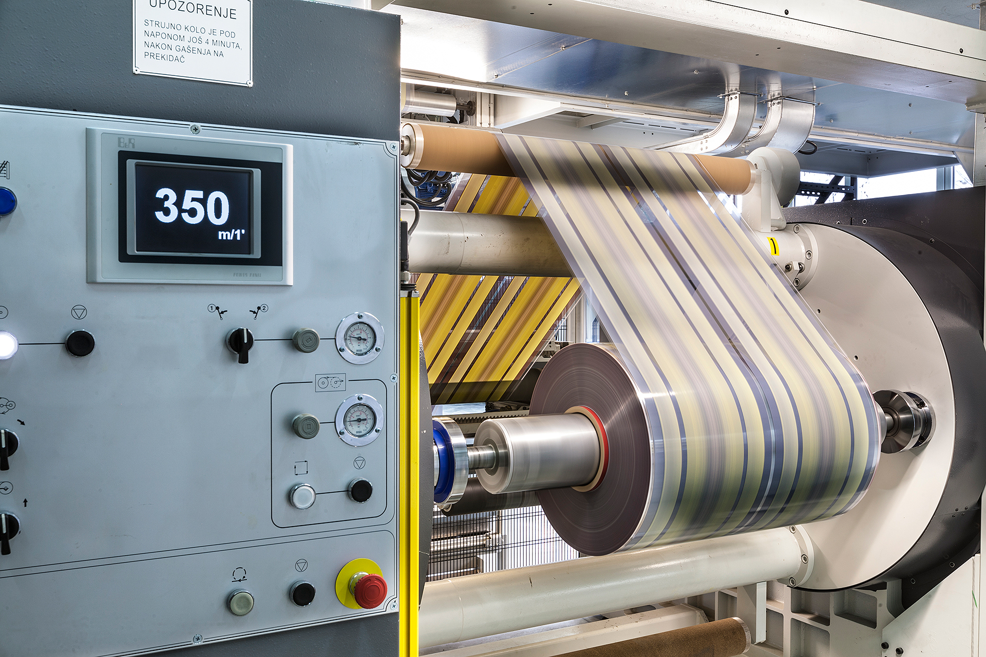 Притежаваме машини за ламиниране до ширини от 1300мм със скорости до 250м/мин.