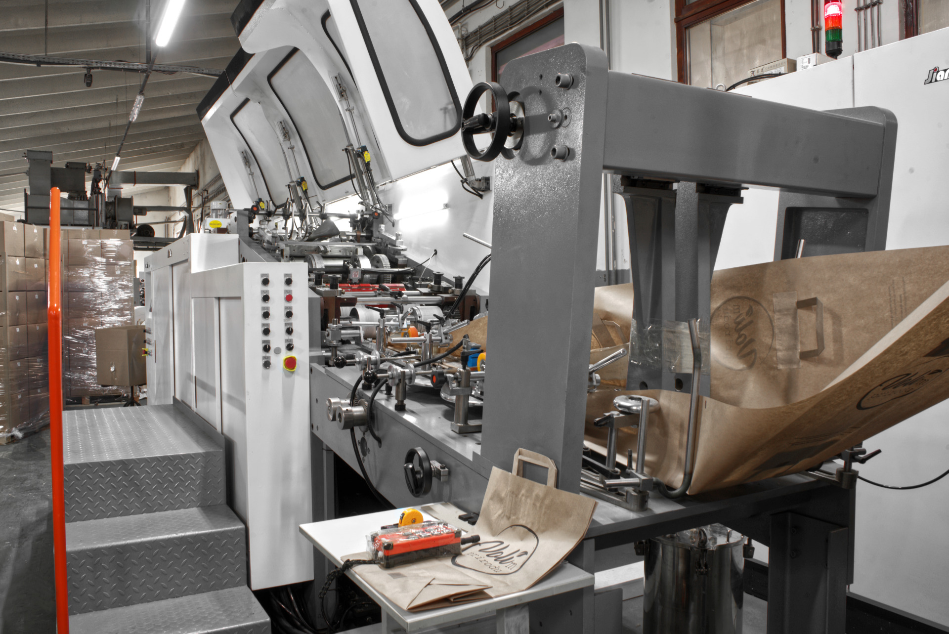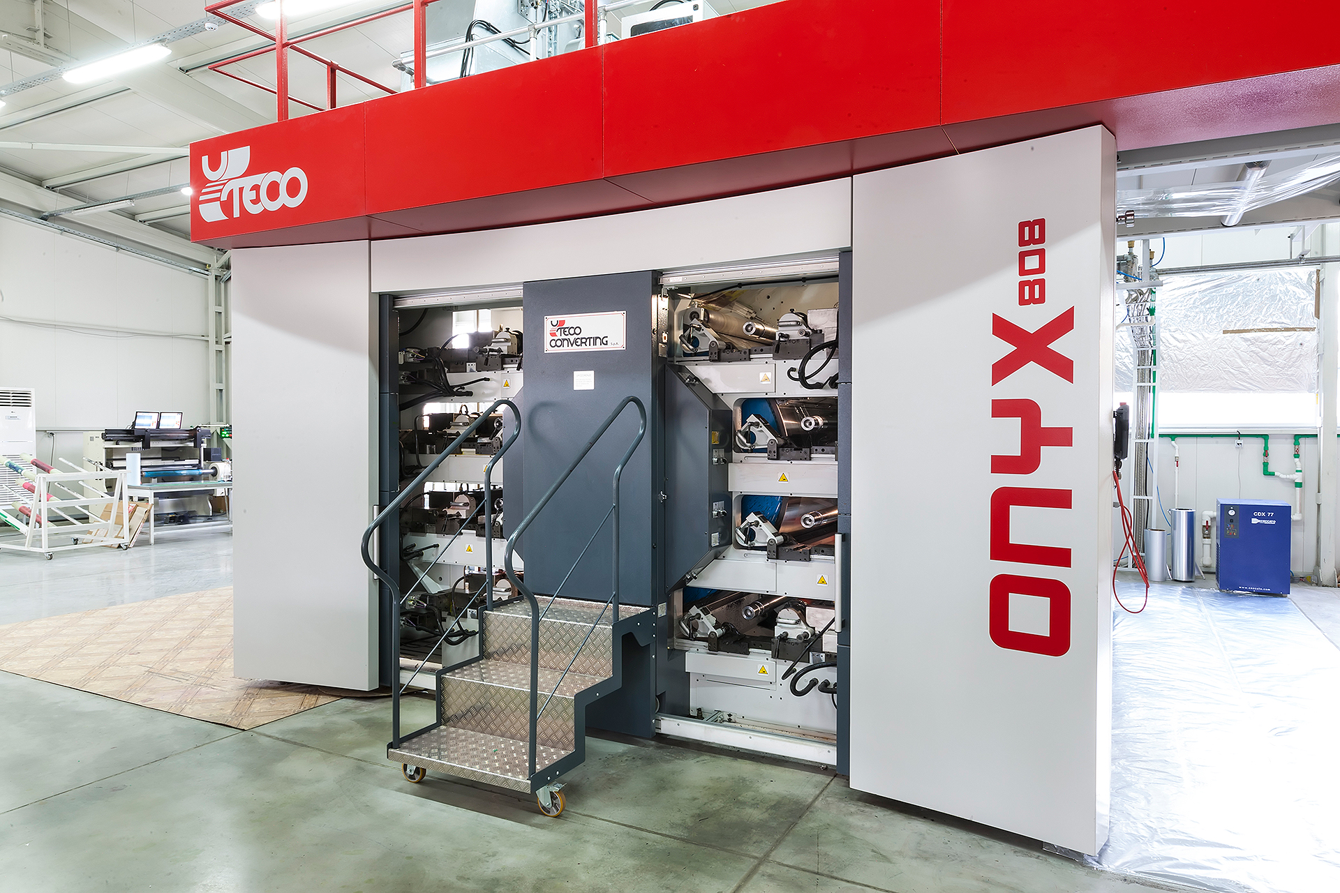 Автоматичните хранилки притежават система за пречистване на PE от дребни замърсявания от типа прах, които могат да създадат проблеми при екструзията. Линията притежава устройство за регулиране на температурата на охладителната вода, устройство за прегряване на хартията, устройство за праймериране, камера за сушене на нанесения праймер и хартия с неподходяща влажност.
